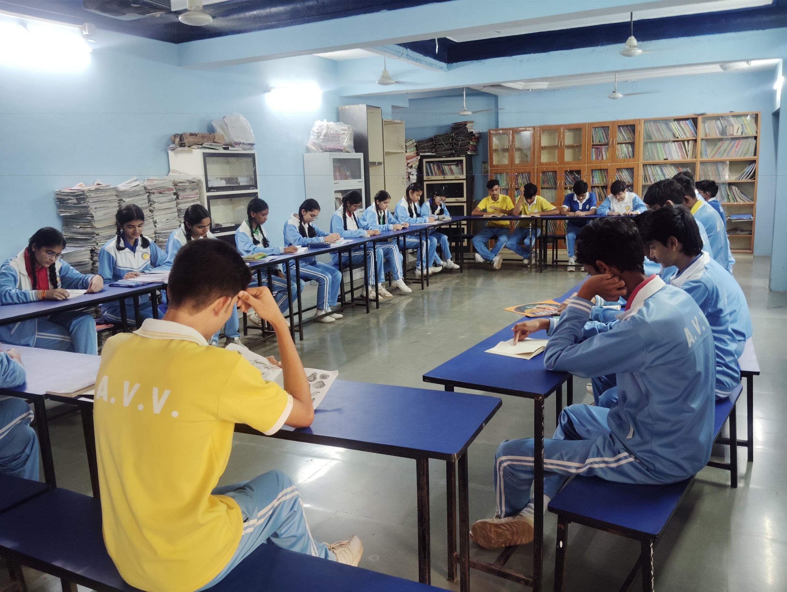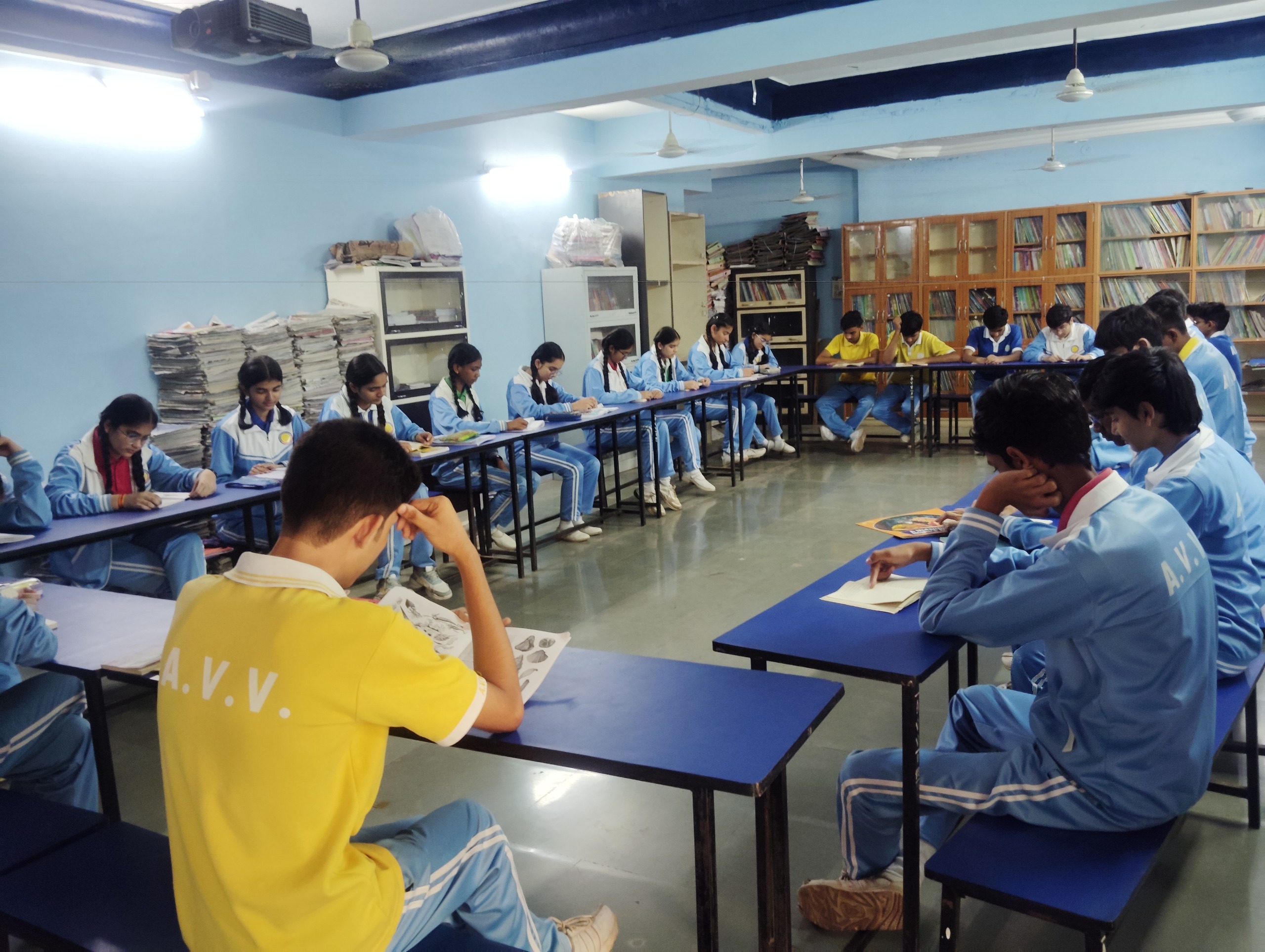 Our well-stacked school library houses over 1500 titles catering to the interests of diverse readers from all classes. Periodicals and journals keep our students well informed about emerging and contemporary trends, the reservoir of fiction serves as a means of relaxation, while the vast repertoire of encyclopaedia and other reference books provide food for thought in sedate surroundings. Our school library ensures that good reading habits are inculcated in students at a tender age.